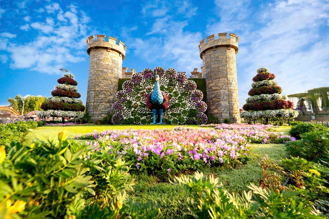 Dubai Miracle Garden is famous for being the world’s largest natural flower garden, featuring over 50 million flowers arranged into stunning sculptures, arches, castles, and the Guinness World Record–holding Emirates A380 floral display.