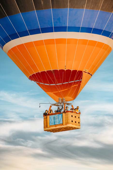 Appropriate Footwear: Since you’ll be embarking on an adventure that involves climbing into the hot air balloon basket, comfortable and supportive closed-toe shoes are a must. Sturdy sneakers or hiking shoes are best for comfort and safety while entering and exiting the basket. Avoid sandals, flip-flops, or high heels, as they may make it difficult to move or climb.