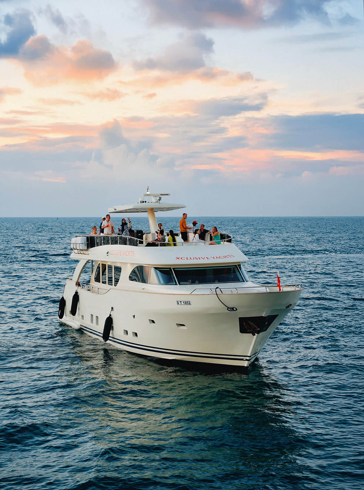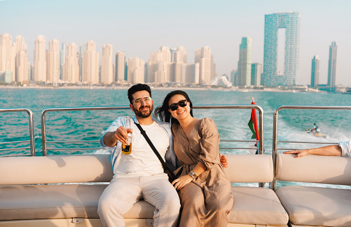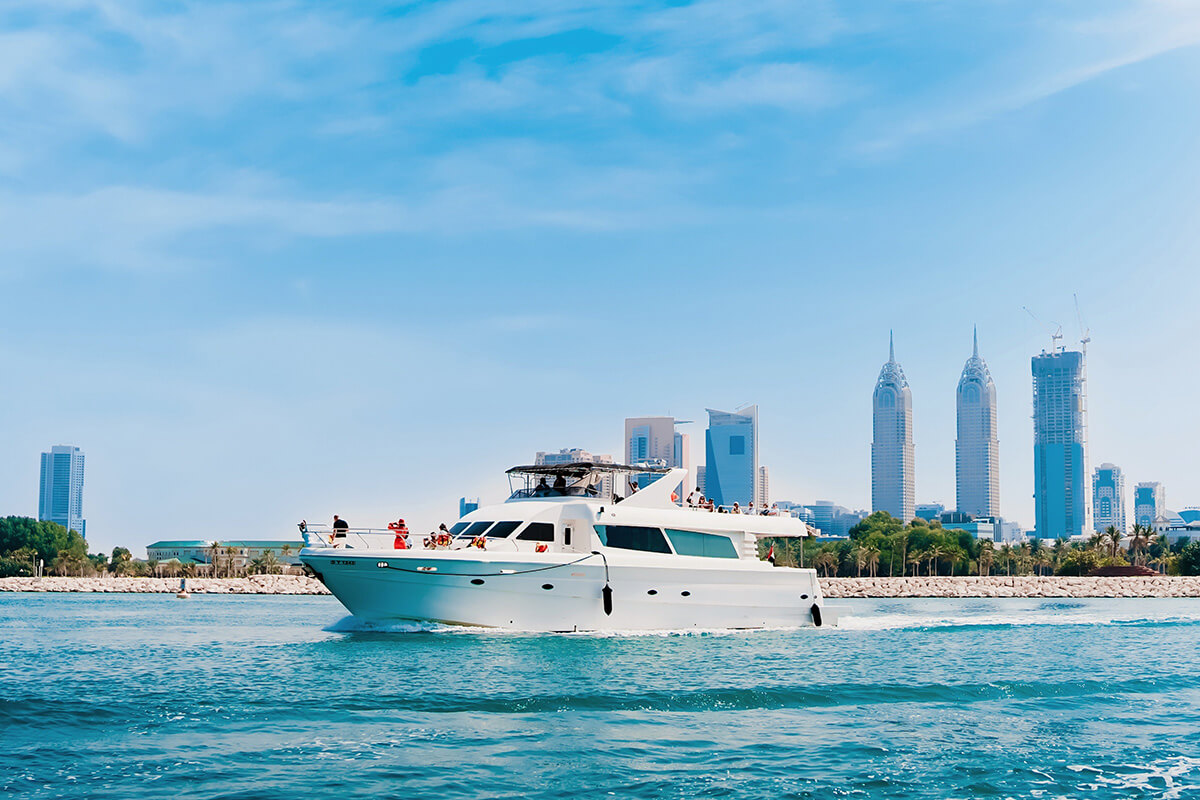 Enjoy a shared luxury yacht experience with stunning views of Dubai’s coastline, complete with a freshly prepared breakfast or a sizzling BBQ.
