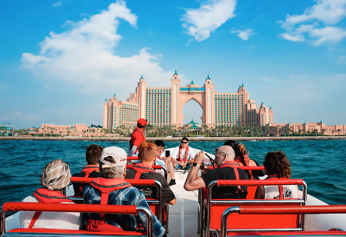 Experience an exhilarating ride on a speed boat along Dubai’s iconic coastline—passing by landmarks like the Burj Al Arab, Palm Jumeirah, Atlantis The Palm, Dubai Marina, and Ain Dubai. The tour blends thrilling cruising with photo-worthy moments.